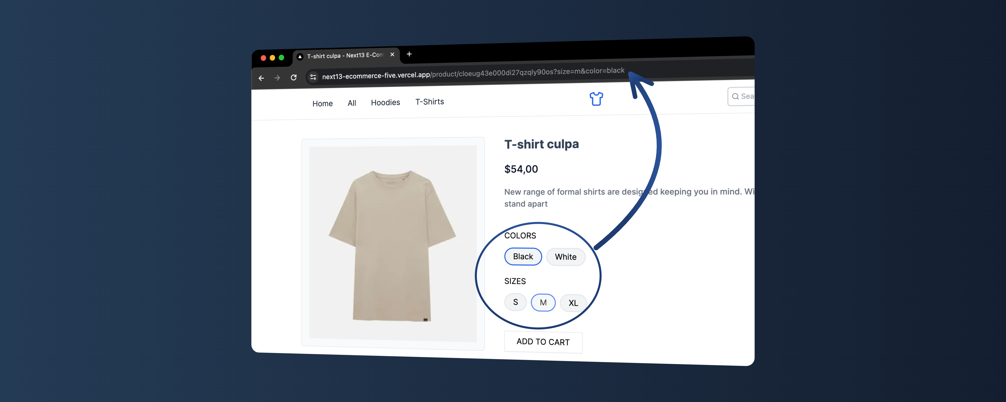 By utilizing useSearchParams, we've successfully linked the component's state with the URL. This approach is particularly useful for e-commerce sites, where you might want to share links to products with specific attributes or settings.